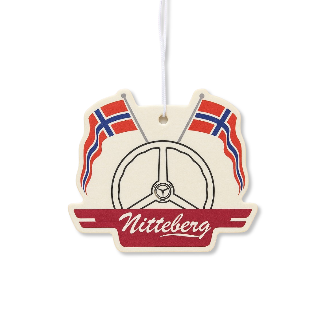 Denne lukter Hugo Boss og ser rå ut med vår klassiske Nitteberg-logo og flagg. Henger rett i speilet og gjør jobben.Luftfrisker med ikonisk Nitteberg-design og en eksklusiv Hugo Boss-duft. Perfekt til bilen, kontoret eller garasjen – både som pynt og for en frisk og sofistikert duftopplevelse.